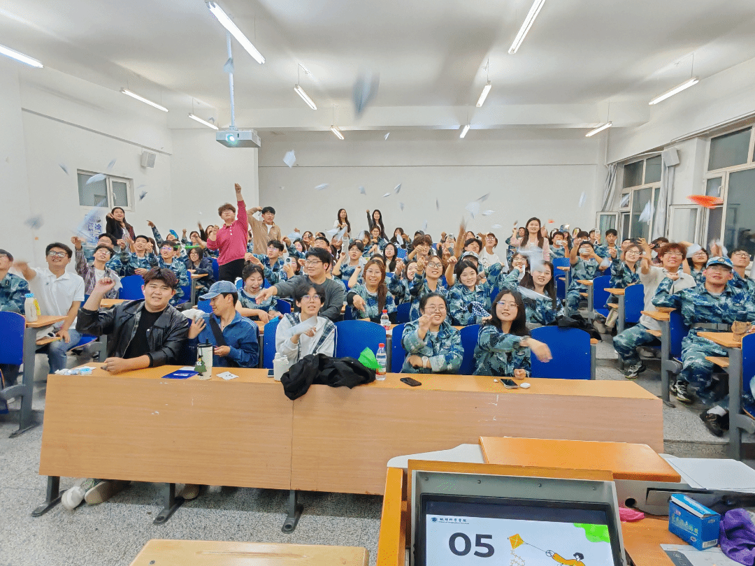 轻柔旋律流淌间,新生们闭目冥想,褪去青涩与忐忑,沉淀心绪。随后,他们执笔将对学业、成长的期许与规划,化作真挚文字写于纸上。折好的纸飞机应声飞向讲台,承载着青春憧憬。纸飞机落定的瞬间,既为新生锚定了成长方向,更似一场 “启航礼”,正式拉开了他们崭新大学生活的序幕。
