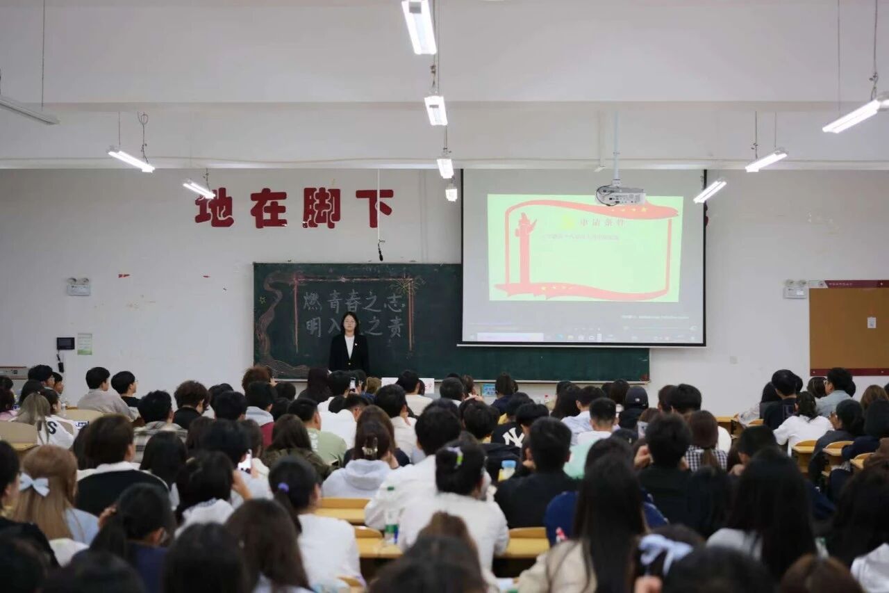 习近平总书记在庆祝中国共产主义青年团成立100周年大会上指出,“入队、入团、入党,是青年追求政治进步的人生三部曲”。为进一步加强党员和团员队伍建设,提高广大青年学子对党的先进理论和团的基本知识的认识,引导新生树立坚定理想信念,激发青年学子积极向党组织和团组织靠拢的热情,推动党团事业持续蓬勃发展。地理科学学院学生党建中心联合学院团委组织部开展“燃青春之志,明入党之责”2025级新生入学系列宣讲。