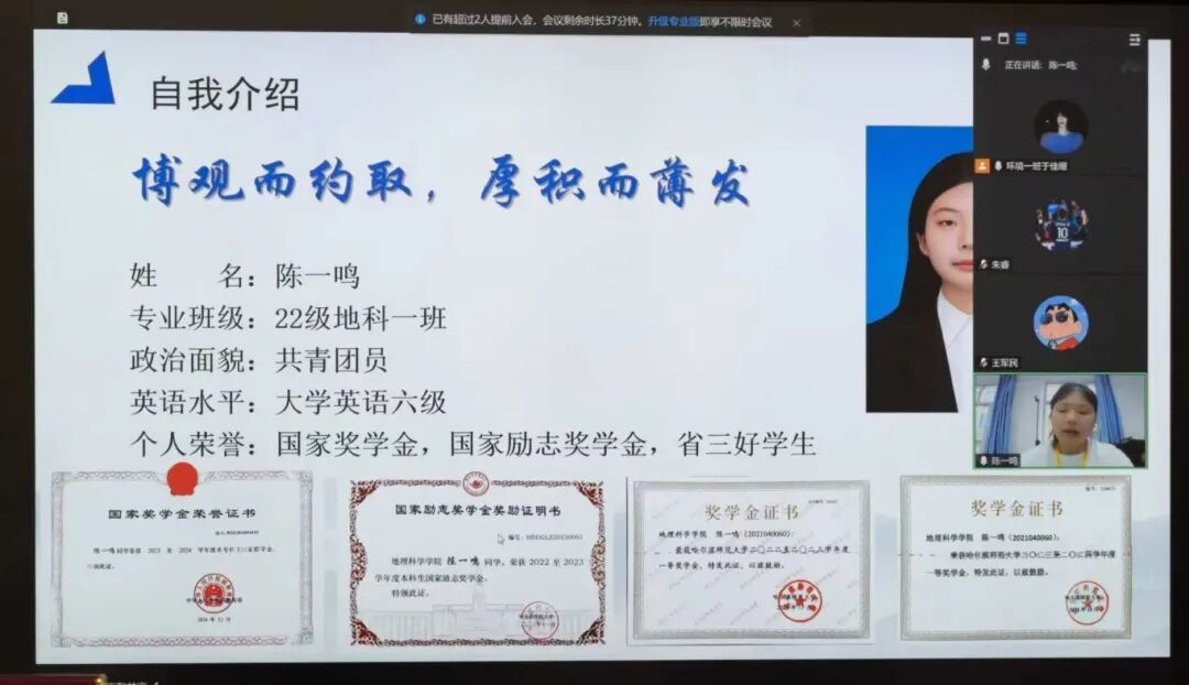 20名参与答辩的学生依次进行答辩,结合自身学习成绩、科研成果、社会实践、志愿服务、获奖荣誉、学科竞赛、论文专利等方面取得的成绩,同学们内容丰富、精彩纷呈的答辩表现获得了评审老师的一致好评。各位学生候选人均展现出扎实的专业能力与综合素养。