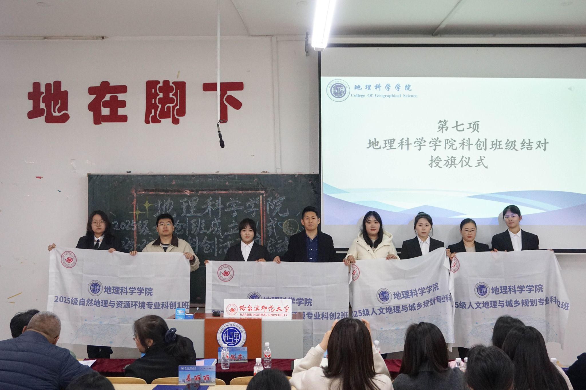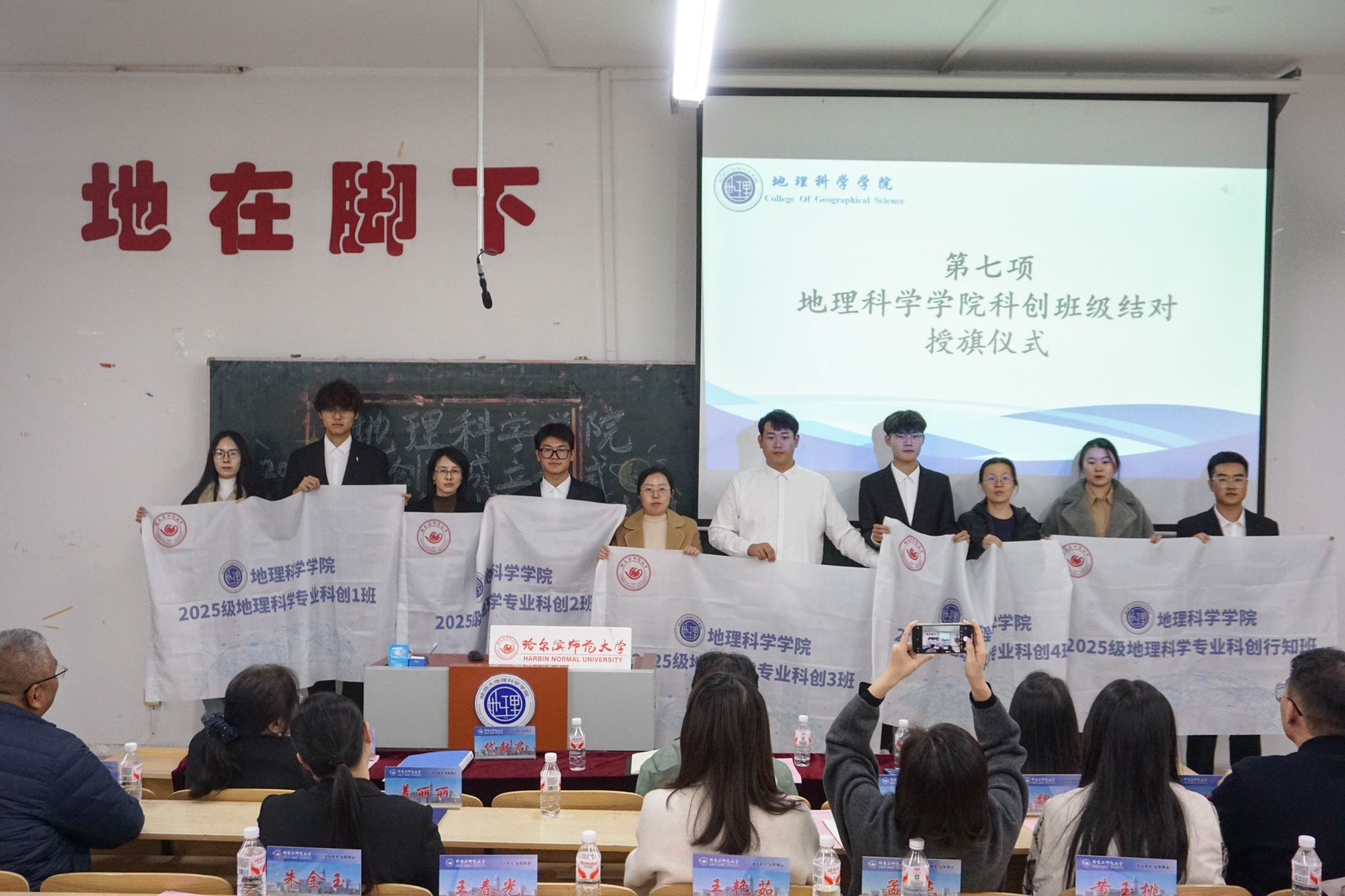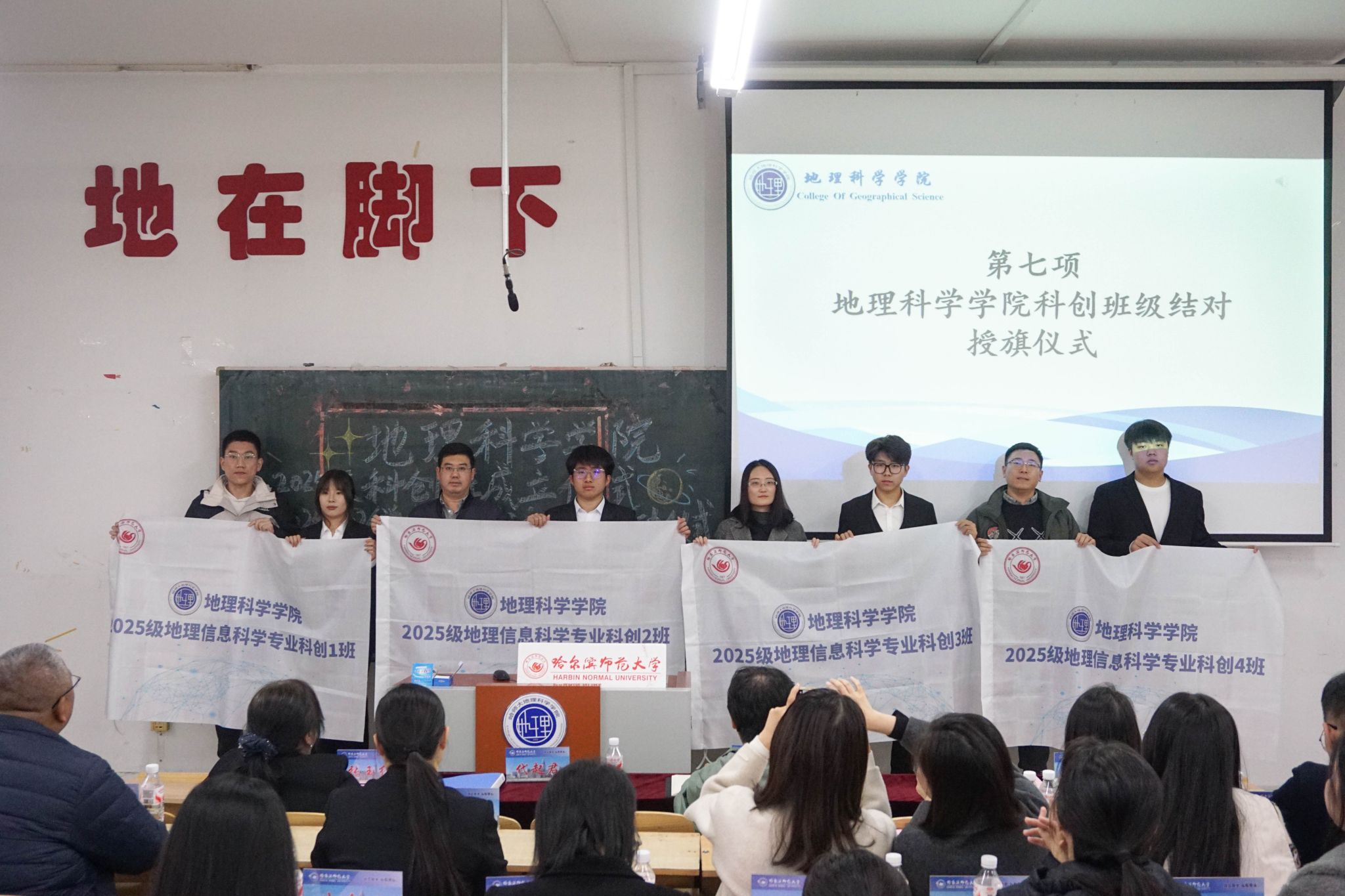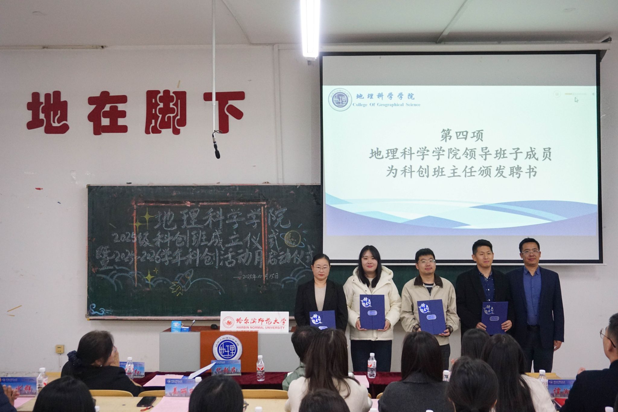 为加速推进地理科学学院创新创业教育工作建设,助力教师创新创业工作提质增效,2025年10月15日13:30,地理科学学院2025级科创班成立仪式暨2025—2026学年科创活动月启动仪式于理工三220室举行。学院院长张冬有、党委副书记代起君、副院长周嘉、副院长张玉红、各系教师代表、全体科创班主任、全体辅导员出席仪式,2024级、2025级学生代表线下参加仪式,其他全体2025级学生于线上参会。本次仪式由学院科技创新创业协会指导教师、学工办副主任李昀东主持。