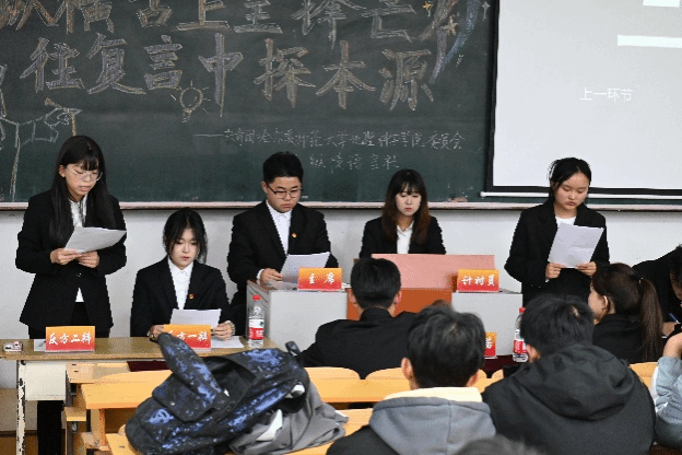本次辩论赛表演赛辩题为“迟到的正义还是正义吗”。赛事环节清晰划分为立论质询、对辩与盘问、自由辩论、总结陈词四个阶段。赛场上,双方辩手针锋相对,引经据典,时而犀利反驳,时而巧妙化解,现场掌声与欢呼声此起彼伏。他们以敏捷的思维、流畅的表达和默契的配合,充分展现了地理学子的思辨风采与团队协作能力。