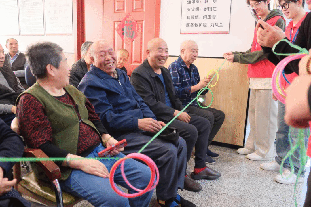 游戏环节是此次活动的一大亮点。志愿者结合长者身体机能与兴趣特点,精心设计 “小圈传递” 趣味游戏。长者们围坐成圈、紧握绳索,在志愿者的口令引导下默契配合,让彩色小圈沿着绳索有序流转。过程中,偶尔出现的小失误,如彩圈滑落、传递节奏偏差,反而引发阵阵善意笑声,现场氛围愈发热烈。互动中,长者与志愿者们的欢声笑语成为重阳佳节最动人的旋律,这份跨越年龄的欢乐与陪伴,定格为秋日里难忘的温情记忆。
