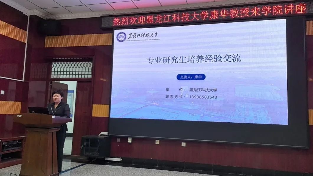 地理科学学院院长张冬有教授主持本次报告会,并重点介绍了地理科学学院资源与环境专硕的人才培养方案、目标模式,课程体系的架构和建设进展。康华教授结合黑龙江科技大学矿业工程学院资源与环境工程专硕培养的经验,从产教育人机制、专硕课程设置、教师队伍建设、导师培训、实践基地建设、实践环节评价、成果转化及专业硕士点总结报告填报等方面介绍了专硕培养的经验。