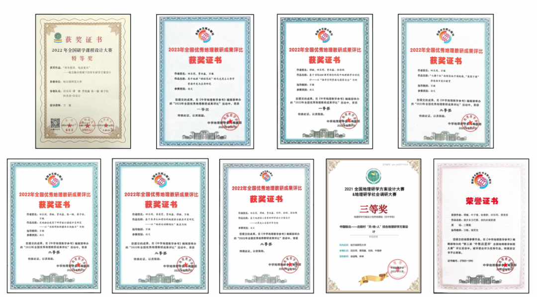 田乐同深知研究要为实践服务,因此除了进行教学研究,他十分重视教学实践。在大一上学期他便积极参加了他人生中第一次教师技能大赛,那时的他并不懂教学法,他内心之法是“你儿时最喜欢的教师怎么上课,你就怎么上课”。于是,以学生的兴趣为帆,他开始制作教具,其所授“地球的内部圈层”获得行知班第一名,并代表班级与学院大二、大三的学长学姐同台竞技,最终获得地理科学学院“教师技能大赛”决赛优秀奖。在这场竞技中他看到自身与学长学姐的差距,于是更努力地钻研高中地理教学内容。大二学年他在学院的“教师技能大赛”大赛中脱颖而出,获得第一名,并代表学院参加哈师大第三届未来教师素质大赛,最终获得优秀奖。在大三学年,他代表学院参加哈师大“绽放新时代的师范荣光——学习贯彻党的二十大精神,争做‘四有’好老师”未来教师素质大赛,并获得二等奖。在大四学年,他将作为代表之一,参加中国教育学会地理教学专业委员会2023年综合学术年会本科师范生教学展示交流活动。