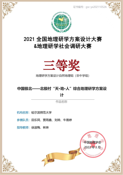 田乐同,男,汉族,2001年3月生,中共党员,地理科学学院2020级地理科学专业行知实验班学生,哈师大第九届“感动校园十佳大学生”,现已推免至华中师范大学学科教学(地理)专业。曾连续两年获得国家奖学金,申请实用新型专利1项,获得软件著作权1项,发表学术论文3篇,其中1篇发表于北大核心期刊。曾获2022年全国研学课程设计大赛特等奖等国家级奖项14项,省级奖项2项,校级奖项16项,先后9次参加志愿服务工作,获得“优秀志愿者”荣誉称号。