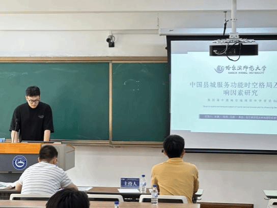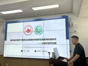 在二分会场城市网络与城乡融合发展主题报告会中,团队成员牟金明做了《城乡融合视角下居民生活质量时空差异及其影响机制研究——以哈尔滨市为例》的学术汇报。