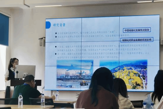在五分会场数字化发展与城市区域空间转型的主题报告会中,团队成员安永乐做了《中国农业发展韧性与农村土地利用效益耦合协调的动态转移与驱动机制研究》的学术汇报。