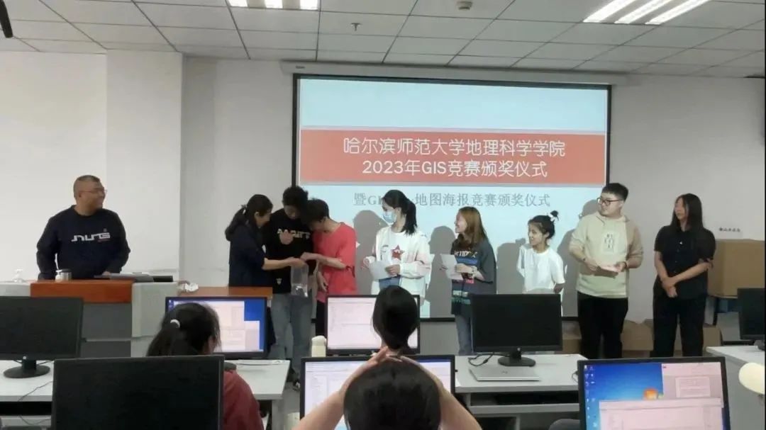 为激发我院学生学习、应用和交流GIS技术的热情,进一步培养学生的编程能力和实践能力,为GIS工作选拔和储备优秀人才,地理科学学院地理信息科学系于2023年5月10日至22日举办GIS开发竞赛,并于5月24日举办GIS开发竞赛颁奖仪式暨GIS Day地图海报竞赛颁奖仪式。地理信息科学系教师齐少群、王彤担任竞赛评委及颁奖嘉宾。
