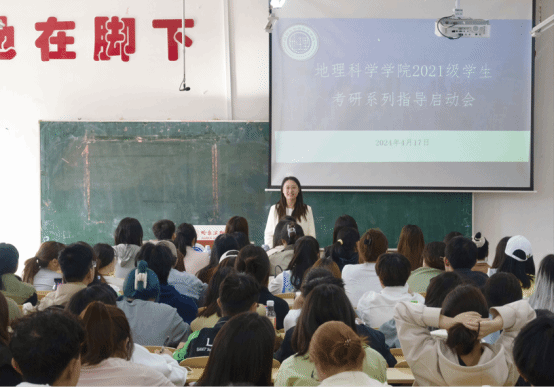 为进一步推动我院学风建设,引领2021级学生明晰最新考研形势,确立目标、增强信心,在学院党委的精心部署和科学指导下,2024年4月17日下午,地理科学学院2021级学生考研系列指导启动会在理工三号楼220室召开,副院长周嘉出席会议,全体辅导员及2021级全体学生参会,会议由2021级辅导员彭琳主持。