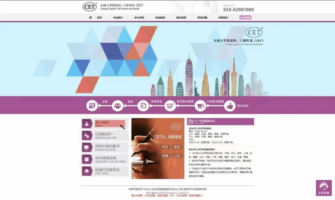 考生于6月7日至开考前登录全国大学英语四、六级考试报名网站下载并打印笔试准考证。