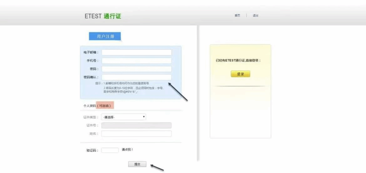 输入电子邮箱、手机号、密码及验证码,个人资料可选填;