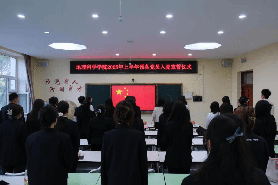 随着激昂的《国际歌》旋律响起,地理科学学院预备党员入党宣誓仪式进入尾声。全体与会人员庄严肃立,在铿锵有力的歌声中,重温党的初心与使命,感受共产主义信仰的力量。