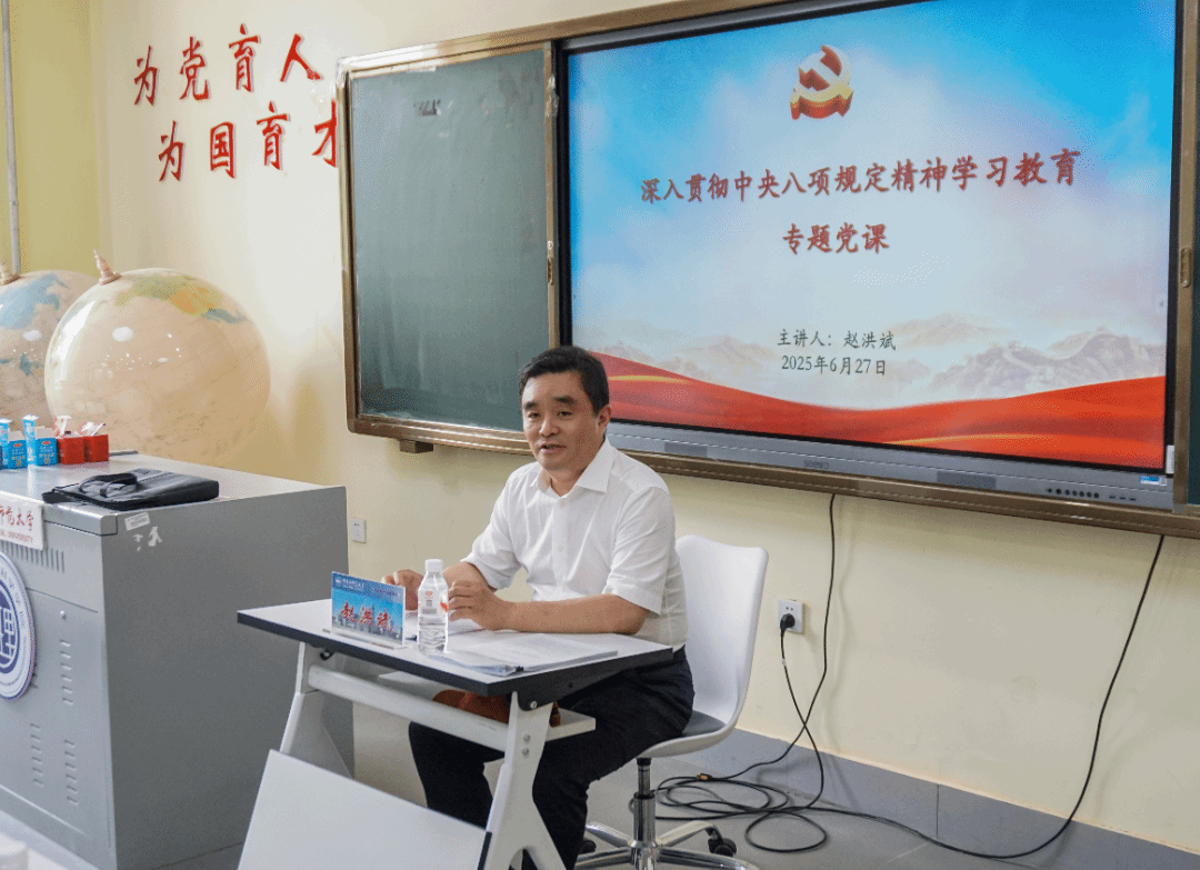 为深入贯彻落实中央八项规定精神,强化我院党员干部理论学习水平,进一步筑牢思想防线,6月27日,校党委常委、纪委书记、省监委驻哈尔滨师范大学监察专员赵洪斌来到地理科学学院,在理工三号楼215会议室为我院党员干部讲授深入贯彻中央八项规定精神学习教育”专题党课,地理科学学院领导班子、资源与环境系教师党支部成员、三办全体行政人员参加党课学习,党课由资源与环境系教师党支部书记张栩嘉主持。